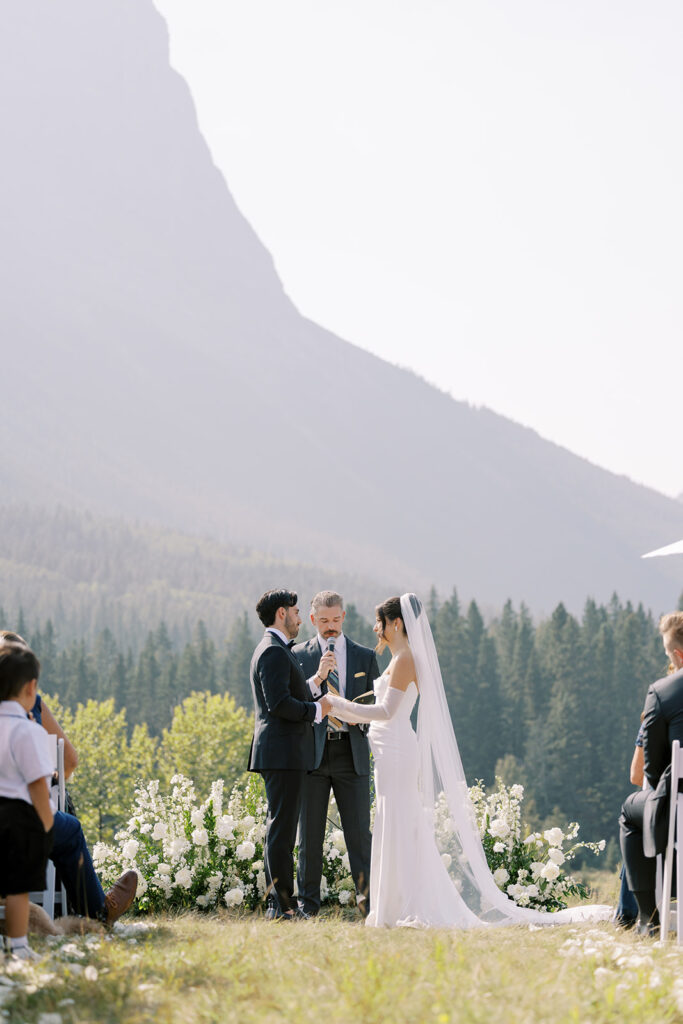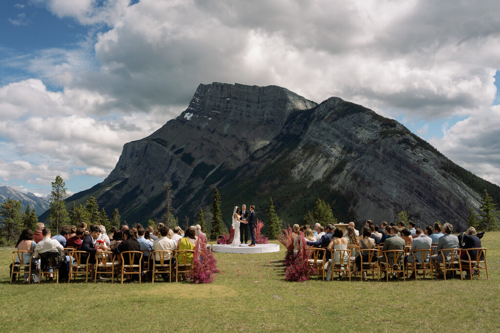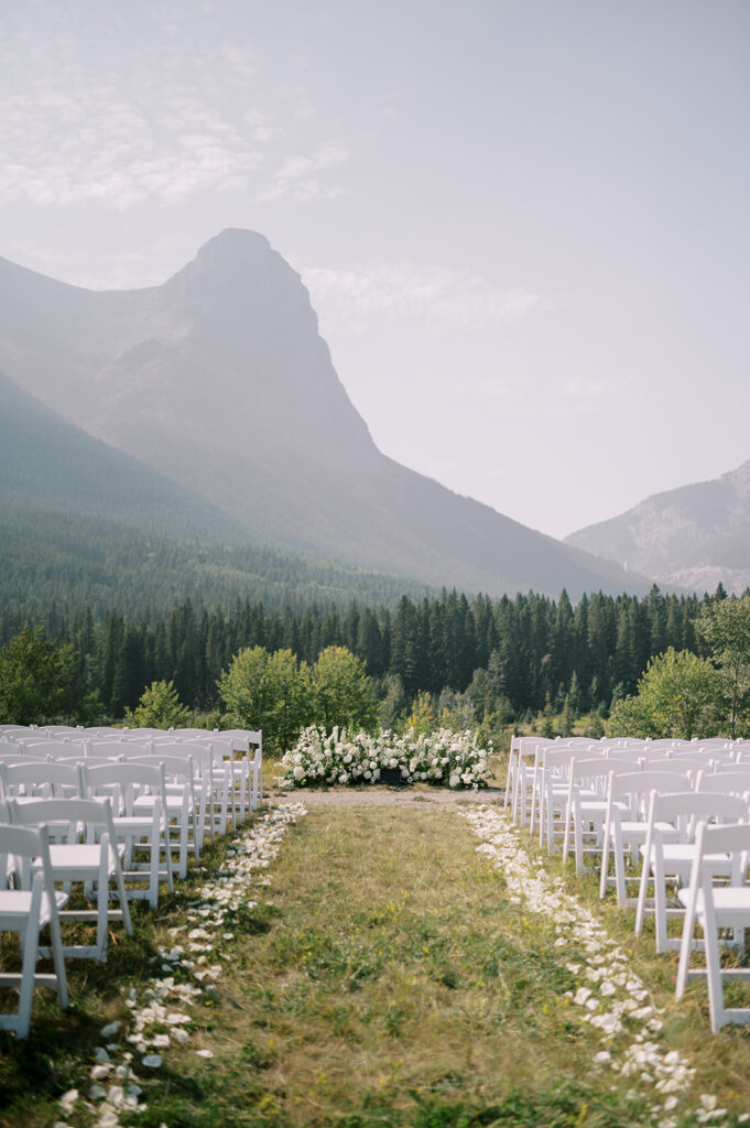 Set in the stunning Canmore landscape, Chelsea and Cody’s wedding was equal parts elegance and joy. The design brief balanced modern romance with mountain charm, soft lighting glimmered through glassware, creating a warm and inviting atmosphere. Guests were treated to a champagne tower moment that felt straight out of a movie, and a feature drink was named after their dog, adding a personal and heartfelt twist. Every detail felt intentional and perfectly “them.”