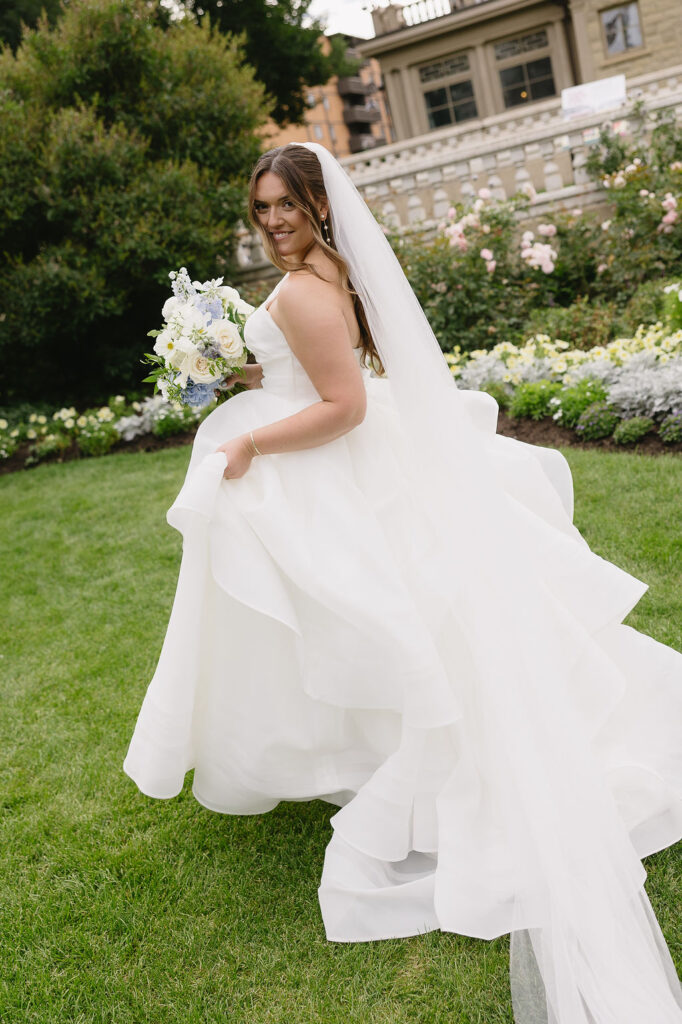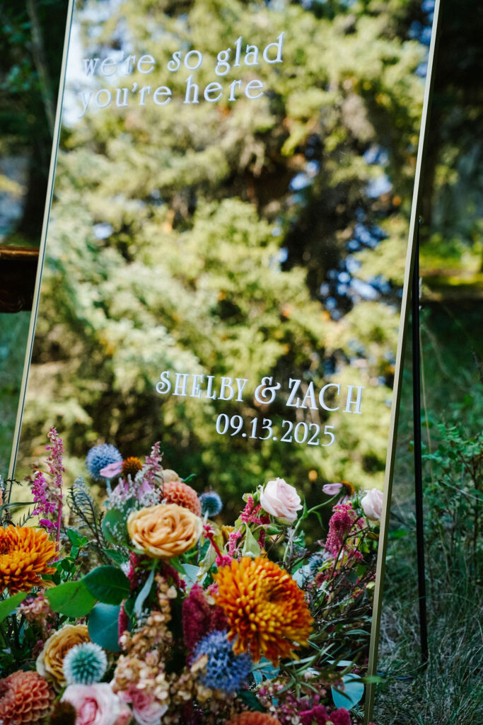 Every element of Sarah and Christian’s day felt intentional and timeless. Set against a beautiful backdrop that needed little embellishment, the venue became the perfect canvas for their story. Lush delphinium blooms filled the space with texture and height, while signature drinks added a personalized twist for guests to enjoy. Sarah stunned in not one, but two gowns, transforming effortlessly from ceremony elegance to evening glamour. The entire celebration felt like a perfect reflection of their grace and ease.